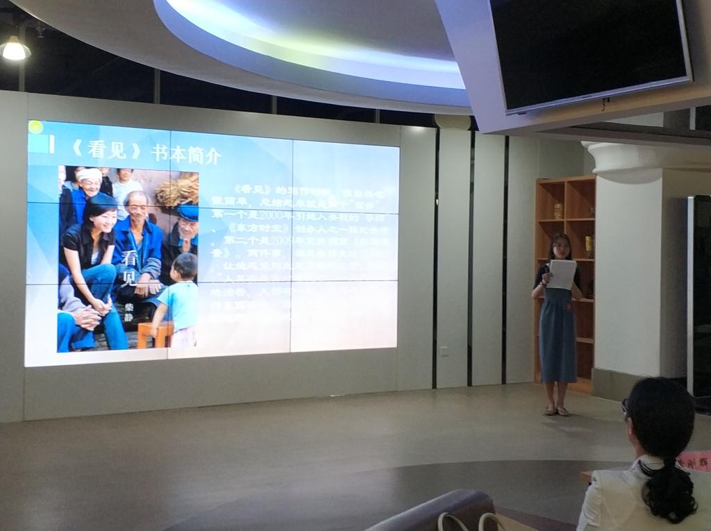 本次书评大赛以柴静的《看见》为素材,经过前期的初赛,进入决赛的十位选手用现场PPT演讲的方式向大家展现自己对这本书的理解与感悟。大赛现场气氛随着选手们的演讲波动起伏,尤其是九号选手蒋君妍同学的开篇快闪,让大家耳目一新。