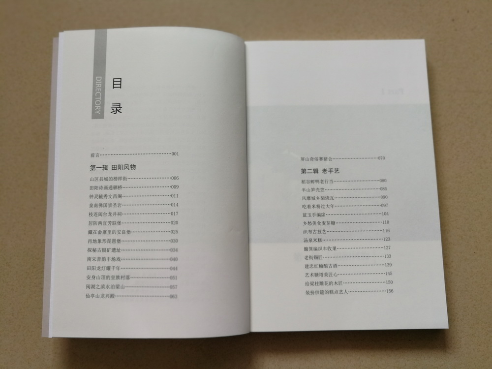 该书由本土作家林生钟执笔、摄影家温欣孝配图,分田阳风物、老手艺两辑,共收入反映大田地域文化、民俗文化、传统文化文章29篇。