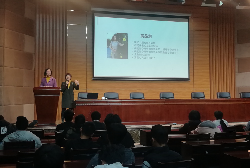 此次讲座邀请校心理健康教育与指导中心的黄晶慧老师为主讲。她是福建省心理咨询师协会家庭教育专委会主任、国家二级心理咨询师,有着扎实的心理学功底和丰富的实践经验。讲座围绕主题,从沟通的概念入手,分析演示了“指责、讨好、超理智、打岔”四种沟通类型的区别,抓住了同学们的兴趣点。运用萨提亚——冰山理论启发同学们深入思考,通过具体的沟通练习帮助同学们掌握有效的沟通技巧。整场讲座贯穿了师生互动、活动体验等环节,精彩纷呈,在情境再现中体验了有效沟通的具体方式。讲座取得了良好的效果,同学们纷纷表示受益匪浅。