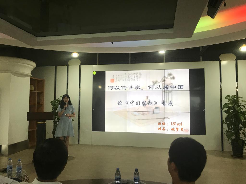 书评大赛在热烈的掌声中拉开序幕,每位选手以PPT配合演讲的形式对《中国家规》这本书进行解读、评论,从探求创作的思想性、学术性、知识性和艺术性进行阐述,力求为在场观众带来一场丰富的文化盛宴。比赛中,作为全场唯一的中职选手,18运输1班的姚梦灵同学毫不怯场,她与大家分享了左宗棠的家风家训对国家、社会及其家族的影响;18运营2班的陈雪华则紧扣“由俭入奢易,由奢入俭难”这一条家训进行了深度分析,阐述了她独到的见解,把比赛推向了高潮。虽然选手们的表现形式各有不同,但每位选手都能紧扣主题发表观点,展示自己的风采。经过评委们认真评审,最终陈雪华获得一等奖,姚梦灵获得二等奖,陈添龙获得三等奖,杜巧龙、黄锐、邱琦蓉、张李斌、黄文达和苏辰哲获得优秀奖。