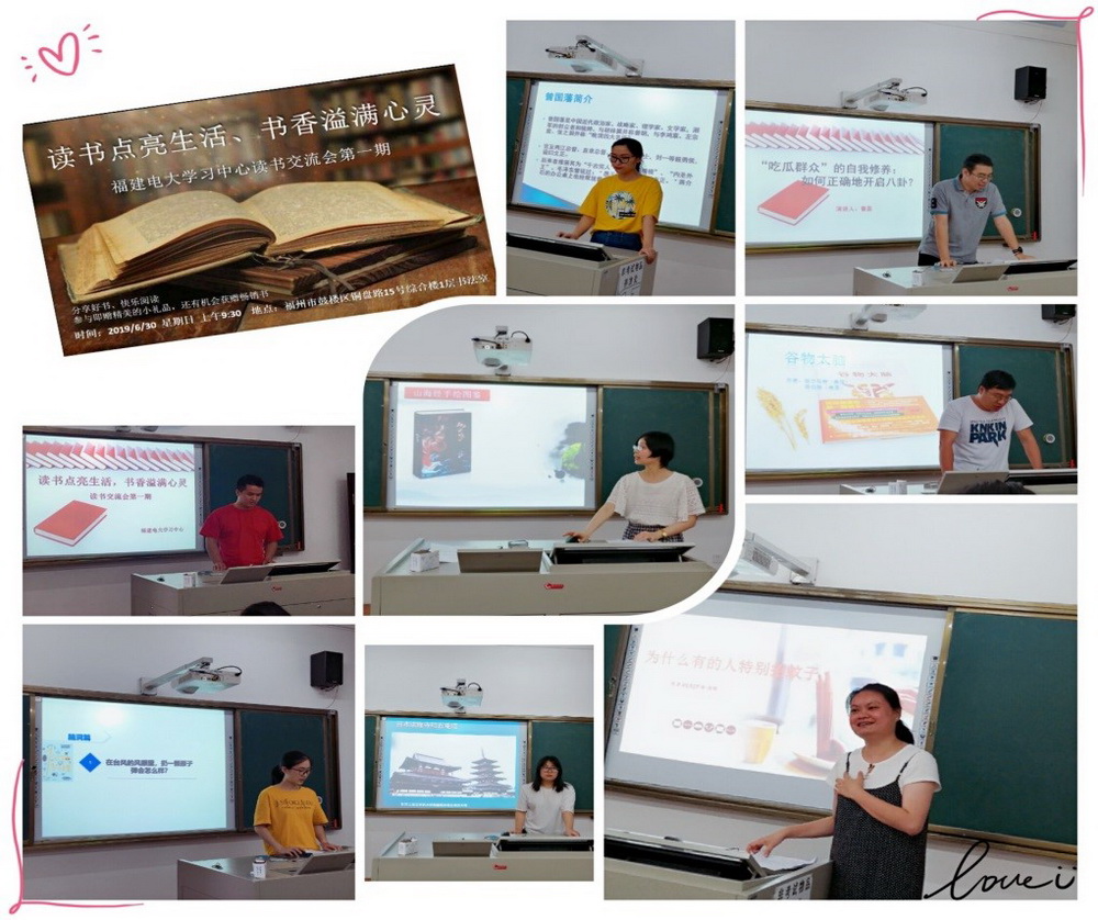为了深入创建良好的远程网络教育的校园文化,营造浓郁的读书氛围,2019年6月30日,网络教育福建电大学习中心聚焦部分学生,举办了第一期以“读书点亮生活、书香溢满心灵”为主题的读书会。本次活动旨在激发学生读书的兴趣与热情,让每一位学生都亲近书本,喜爱读书,学会读书;让每一位学生在读书活动中沐浴文化的恩泽,接受传统的洗礼,享受阅读的快乐。本次活动分为“我推荐一本好书”、“口头交流”和“现场智慧游戏”三个环节。