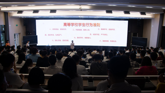 为了全面贯彻党的教育方针,加强学院学生思想政治教育工作,引导学生坚定理想信念,形成良好的道德品质,养成文明的行为习惯,10月11日,职业学院组织开展《高等学校学生学生行为准则》专题教育活动,2021级全体高职学生参加了此次活动。