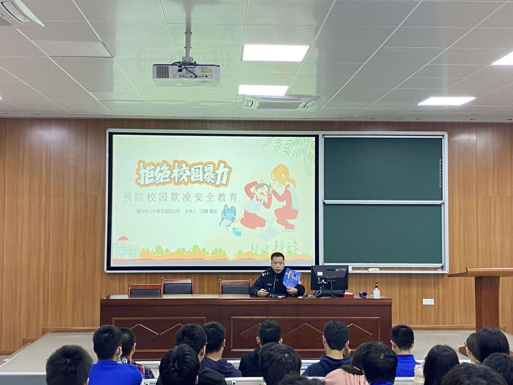 为防止校园欺凌事件的发生,构建平安和谐校园,增强学生的法治知识,预防校园暴力事件,提高同学们的安全防范意识和自我保护能力,10月25日下午,职业学院特邀福州市公安局茶园派出所民警刘峰到校开展“防范校园欺凌”专题讲座,20级电气工程系学生参加了活动。