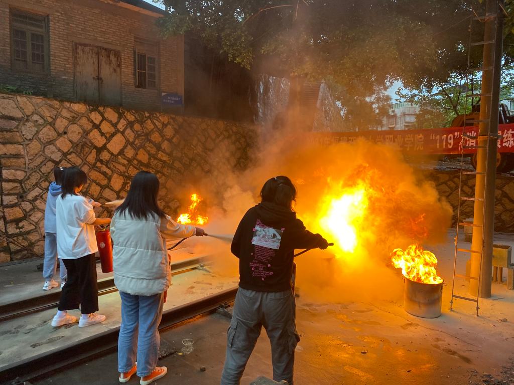 11月4日下午16:00,保卫科苏斌老师先为同学们讲解了干粉灭火器的使用方法与火场逃生技巧。随后,在保卫科老师的指导下,同学们使用干粉灭火器对预设的火焰进行灭火操作,亲身感受在火场发生时应该如何正确地使用消防设备,通过实战掌握了灭火器的使用方法。通过这次灭火演练活动,增长了学生们的消防知识,提高了消防意识,掌握了消防技能,为预防和处理校园突发事件提供了有力保障。