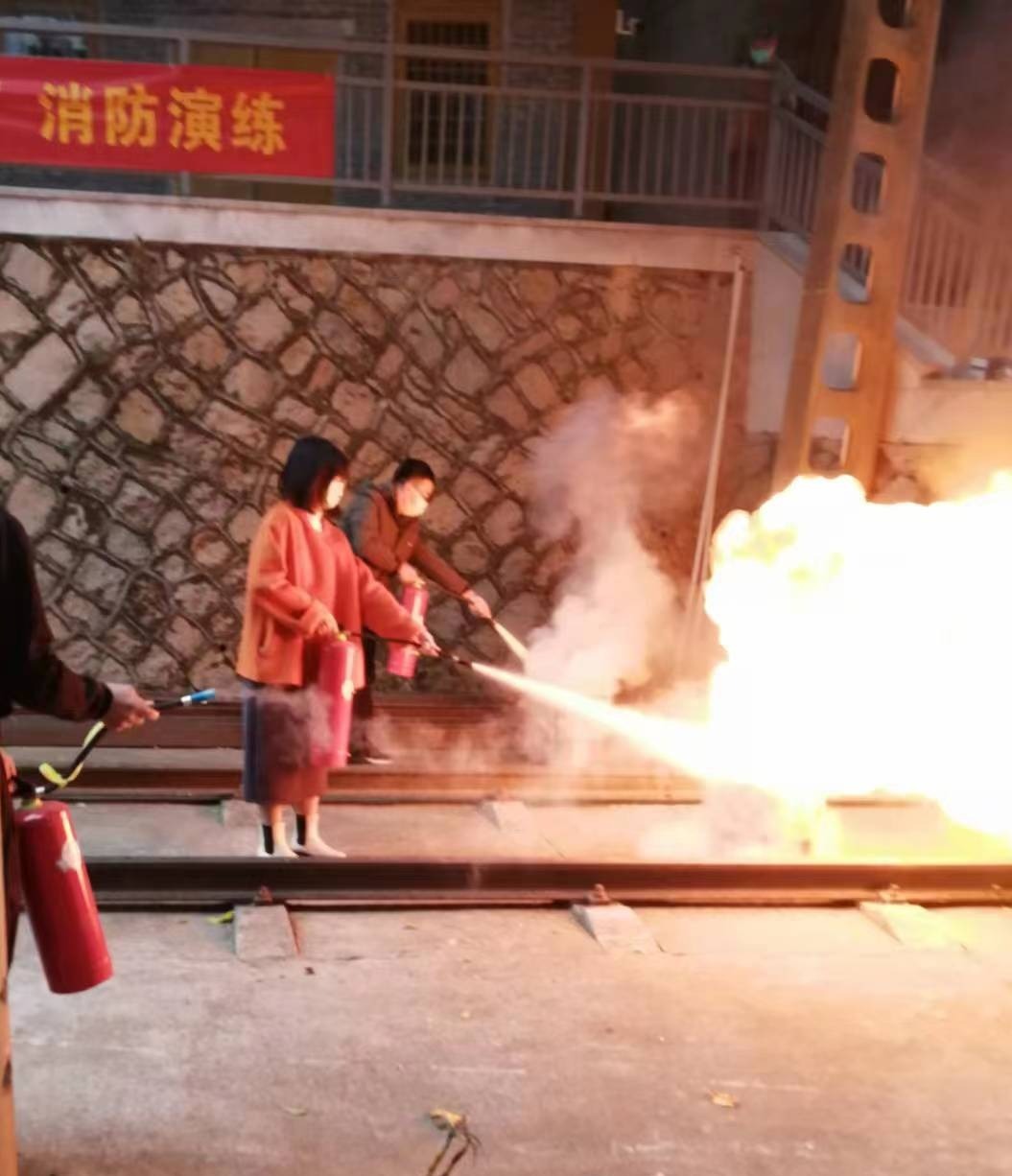 在演练过程中重点向大家讲解了灭火器的分类、使用要点以及注意事项,并进行了现场演练。
