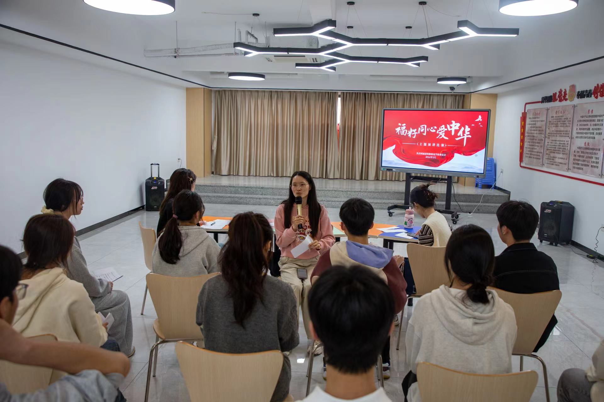 3月27日下午,职业学院在学生服务活动中心举行以“福籽同心爱中华”为主题的演讲比赛,活动由学院主持人社承办,院团委副书记林舒俐及学院学生科教师担任比赛评委。
