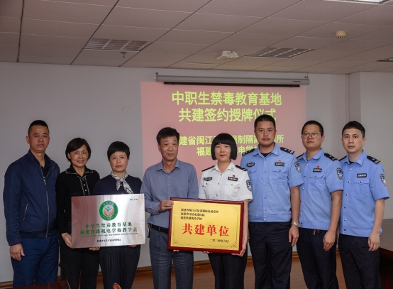 6月6日下午,福建省闽江司法强制隔离戒毒所正式与我校职业学院举行合作共建签字揭牌仪式,闽江司法强制隔离戒毒所党委书记政委陈红玲、职业学院院长陈伟雄以及相关部门负责人出席会场。签字揭牌仪式上,陈红玲指出,禁戒毒工作是一项系统工程,需要全社会广泛参与和大力支持,与中职学校的合作共建,是戒毒所推进加强社会帮教、做好禁戒毒宣传的一项重要措施。陈伟雄提到,合作共建不仅推动了学校的禁毒志愿宣传工作,也从更专业的角度提升了学校安全教育的内涵和品质。大家携手共进,为新时期的禁毒工作积极努力。