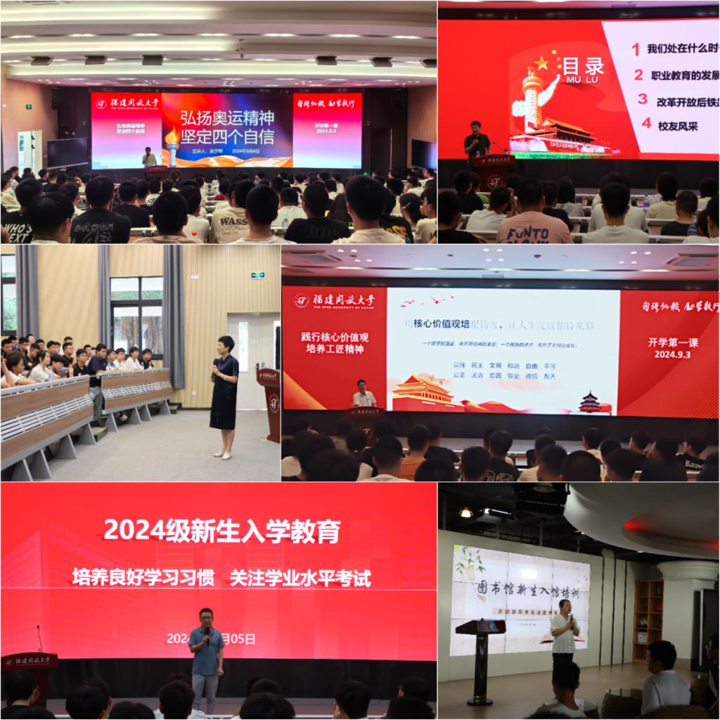 活动采取线下教学与线上同步直播的方式开展各类主题讲座,教学主会场设在智慧教室,线上直播分会场为各班级教室,共有2024级495名新生参加。本次新生入学教育,由学院班子成员带头领学,通过选取不同的教育主题,分别以思政引领、安全教育、专业解读、学业规划等内容出发,为新生们开启了职业教育的第一课。
