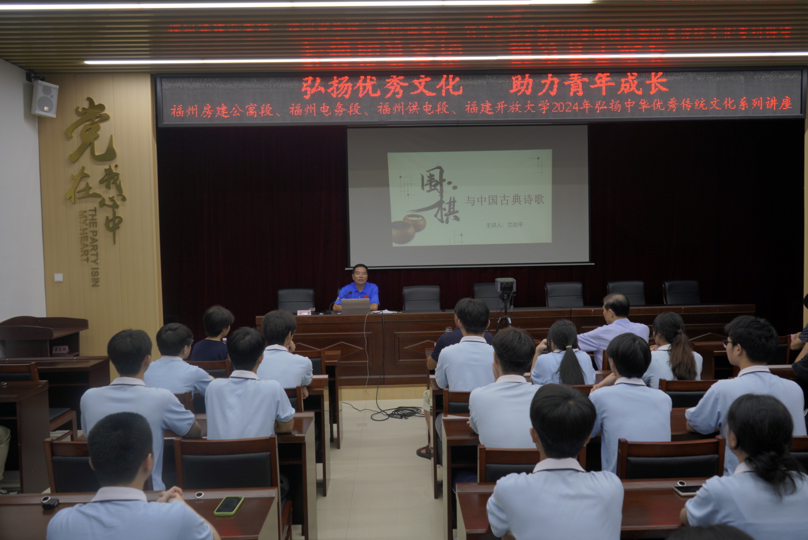 9月19日,福州房建公寓段、福州电务段及福州供电段联合职业学院在南铁学校党员活动室共同举办“弘扬优秀文化,助力青年成长”讲座。学院团委负责人林舒俐老师带领学生参加,讲座由福州铁路分局原党委副书记俞建峻主持。