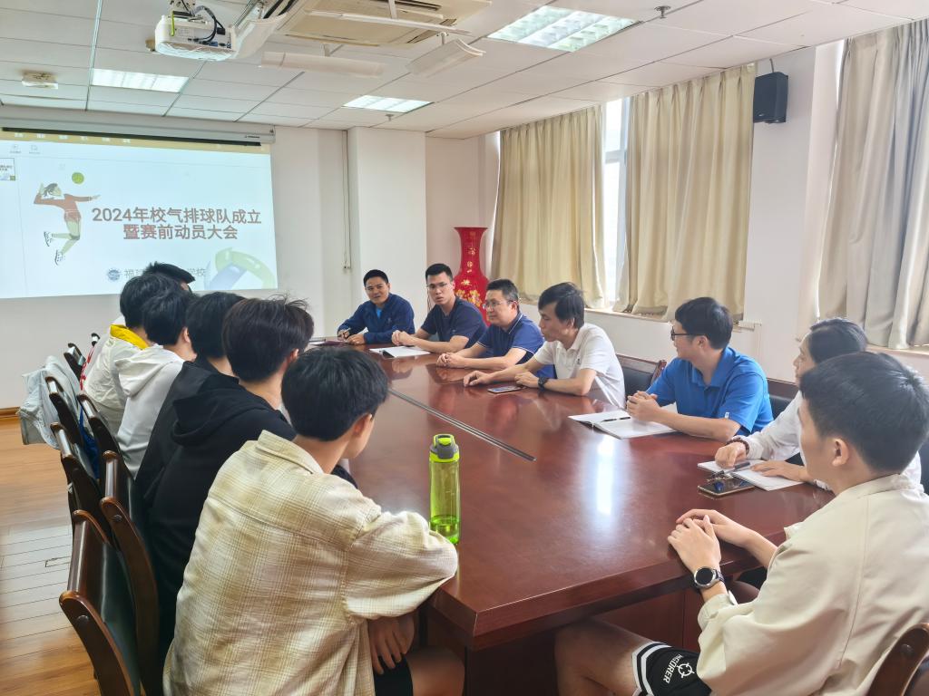 10月10日下午,职业学院于明德楼902会议室召开2024年学院气排球队成立暨赛前动员大会。会议邀请学院党总支书记吴宁晖、副院长李锦、公共管理系主任戴庆荣作赛前动员,吕莹莹、郑少烽两位教练员及全体男子气排球队10名队员到场参会,体育组组长吴深老师主持会议。
