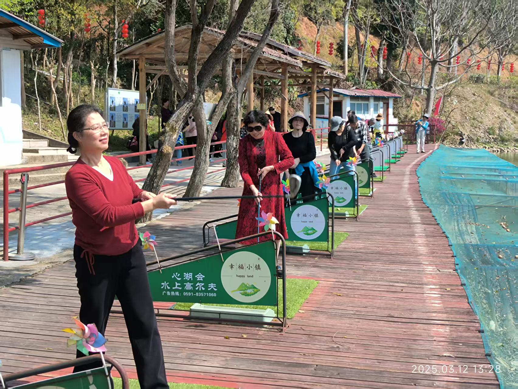 在幸福庄园,漫步在山水成荫的美好自然环境中,大家分成三组,先后参观了新时代法治教育实践基地,参加了水上高尔夫、制作葱饼、射箭、打牌、茶叙等活动,清新的空气与明媚的阳光让大家心情愉悦,现场满是欢笑声与喝彩声。在法治教育实践基地,大家学习习近平法治思想,增强了法治意识和防范诈骗、保护自我的能力。在水上高尔夫区域,他们身姿矫健,挥动球杆,白球掠过水面,激起层层涟漪。手工制作葱饼的环节更是充满乐趣,老同志们围坐一起,在庄园师傅指导下揉面团、包馅料、擀面皮,一道道工序有序进行,当喷香的葱饼新鲜出炉,大家品尝着自己的劳动成果,脸上洋溢着幸福与开心。射箭场上,老同志们同样不甘落后,他们搭箭、拉弓,眼神专注,尽显沉稳自信,即便是初次尝试的,在工作人员耐心指导下,也能射中目标,体验到射箭的独特魅力。在棋牌室,老干部或打牌,或打台球,或泡茶交流,其乐融融。