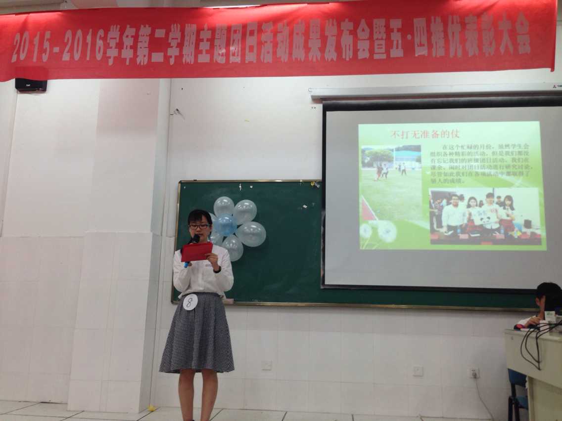 在成果推优会现场,各团支部代表结合视频,幻灯片等方式依次对本班级的主题团日活动进行成果汇报展示,为大家展现了一个个青春洋溢的主题团日活动。最终2015级运营4班以一部自拍自导自演的青春励志微电影《谁的青春不迷茫》以及组织本支部成员探访慰问红星老人公寓的爱心志愿出行等亮点,一举夺下本次评比一等奖,运营1班和2班获二等奖,运营3班、物流1班、车辆1班获三等奖,其余班级获优秀奖。