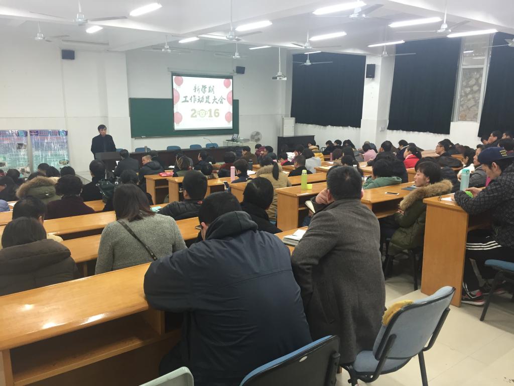 2月26日上午九点,职业学院新学期工作大会在博厚楼阶梯教室举行,会议由院党总支书记吴宁晖主持。