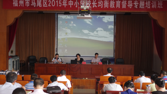 为了贯彻《义务教育法》、《教育督导条例》和《国务院关于深入推进义务教育均衡发展的意见》精神,落实马尾区委、区政府提出的教育事业跨越发展的要求,尽快建立一支高素质的学校管理队伍,更好地为马尾区经济建设服务,推动马尾区教育事业又快又好的发展。马尾区教师进修学校联合福建省中小学教师远程培训中心共同举办“马尾区2015年中小学校长均衡教育督导专题培训班”于8月13日上午在马尾区教师进修学校办公厅举行开班仪式。马尾区教育工委副书记、教育局长陈爱萍,教育工委副书记黄德晖,福建电大教师远程教育学院院长徐敏,马尾区教师进修学校副校长姜瑞兴及全体学员一同出席了开班仪式。仪式由姜副校长主持。