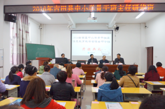 12月9日上午,2016古田县中小学骨干班主任及教育教学管理者研修班在古田县教师进修学校举行开班仪式。福建广播电视大学培训学院院长林永周、副院长江克英、古田县教师进修学校校长黄传云、培训部主任黄仰庚以及古田县中小学骨干班主任、教育教学管理者共计120人参加开班仪式。仪式由黄仰庚主持。