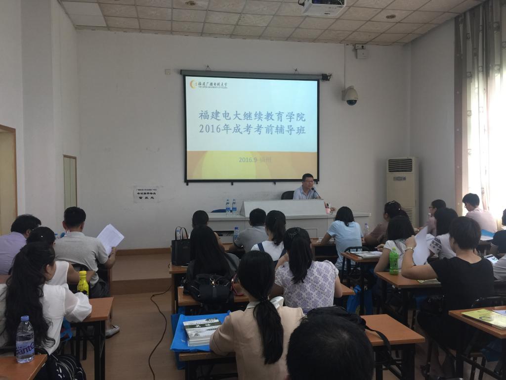 9月25日下午,继续教育学院成考考前辅导班在左海校区综合楼六楼多媒体教室顺利开班。院领导吴国、陈志伟、李金钗,学院有关人员及报考我校成考本科的部分考生参加了开班仪式。