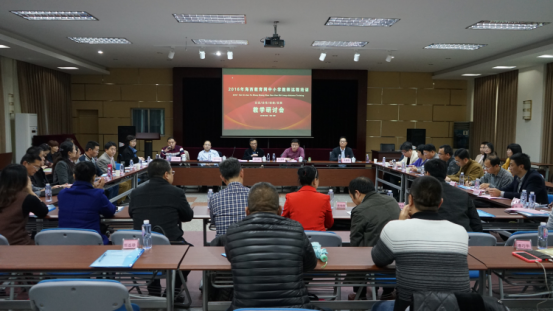 1月6日上午,为总结2016年度工作成绩,征求改进中小学教师远程培训工作的意见与建议,探讨2017年的培训工作思路与发展方向,海西教育网在福建电大左海校区六楼多功能厅召开2016中小学教师远程培训教学研讨会。福建电大副校长沈光辉、培训学院院长林永周、副院长吴盛雄、江克英、北京继教网技术有限公司董事长刘玉明、指导老师代表、教师进修学校代表及海西教育网全体工作人员参加了会议。