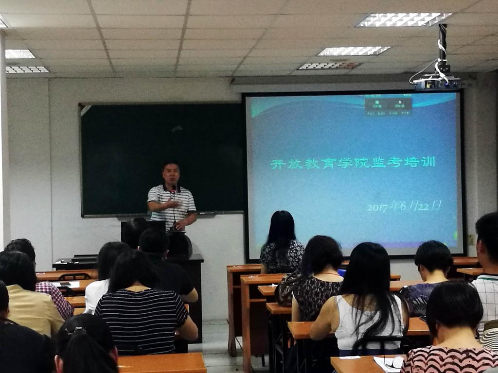 6月22日下午,开放教育学院2016-2017学年第二学期期末监考培训会在左海校区召开。雷乃旺院长和谢孝碰副院长及全体监考人员共同参加了培训会。会议由王妙真副院长主持。