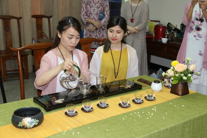 实训活动吸引了河北广播电视大学客人前来观赏和品茗