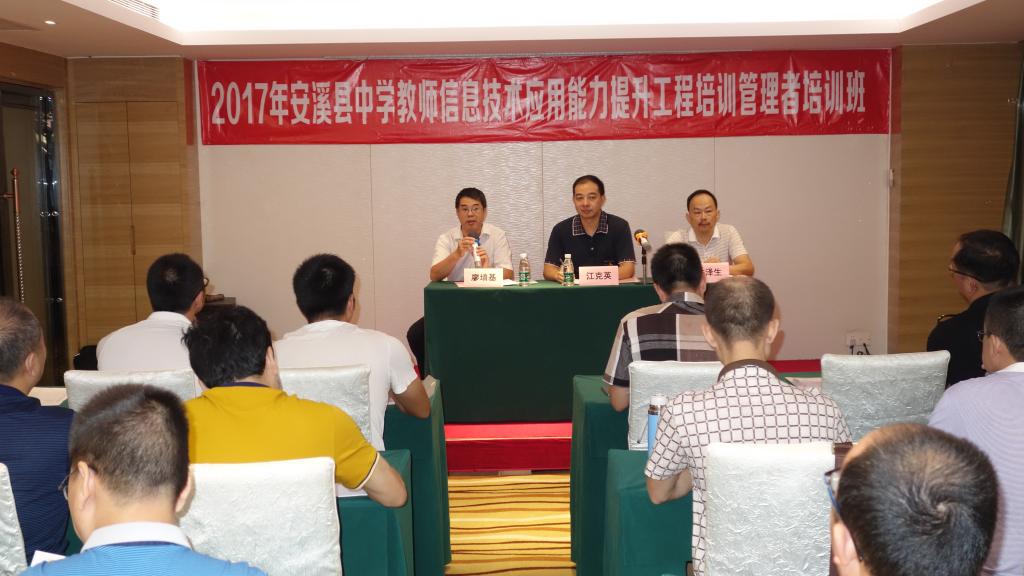 9月25日上午,安溪县中学教师信息技术应用能力提升工程培训管理者培训班在深圳拉开帷幕。福建广播电视大学培训学院副院长江克英,安溪县教师进修学校培训处主任林泽生、副主任廖培基以及安溪县44名培训管理者出席了开班仪式。