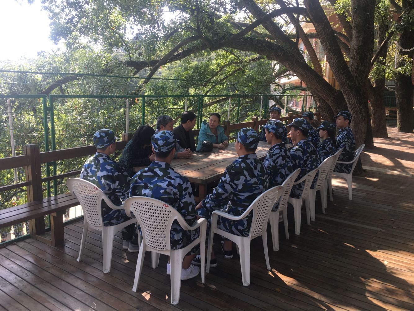 10月23日上午,学校关工委常务副主任肖朝福、关工委秘书长闵小尧前往鼓山青少年军训基地看望职业学院军训新生。