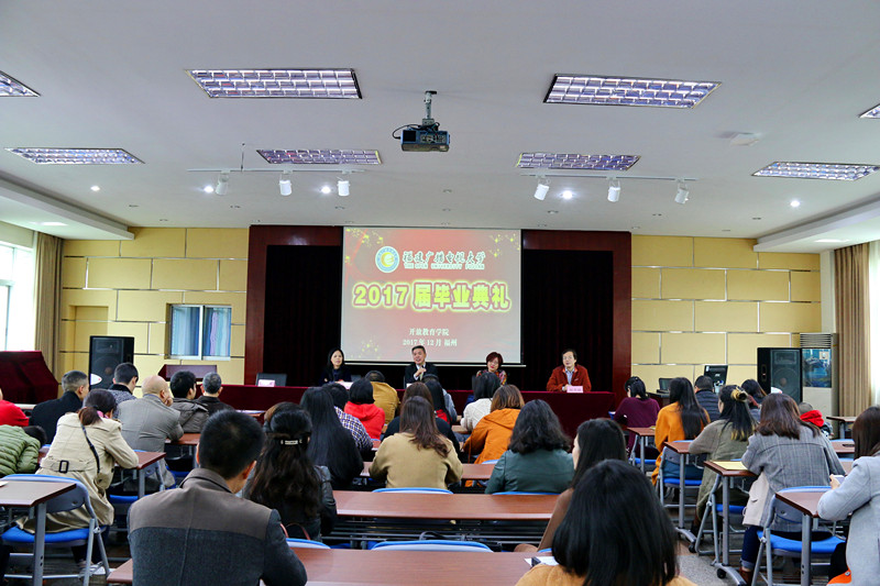 12月2日上午,福建广播电视大学开放教育学院在左海校区召开2017届开放教育毕业生毕业典礼。学院雷乃旺院长、教学管理中心教师代表赵容副教授、开放教育学院全体教职工和2017届校本部毕业生一同参加了典礼。毕业典礼由学院王妙真副院长主持。