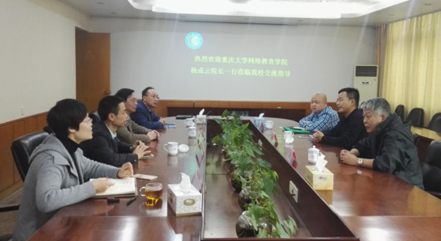 12月6日下午,重庆大学网络教育学院院长杨成云、副院长王怡、招生办主任刘金等一行到我校考察调研。远教学院院长周文明、副院长林光明、杨聪颖及相关部门负责人接待了来宾,并与来宾进行了座谈交流。