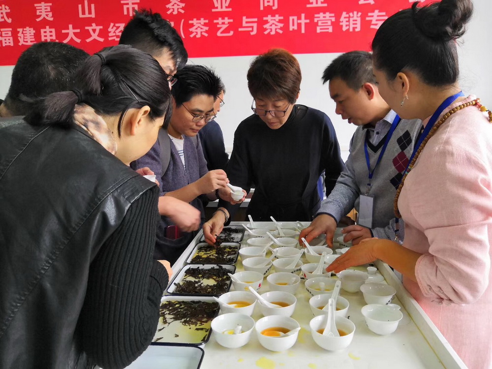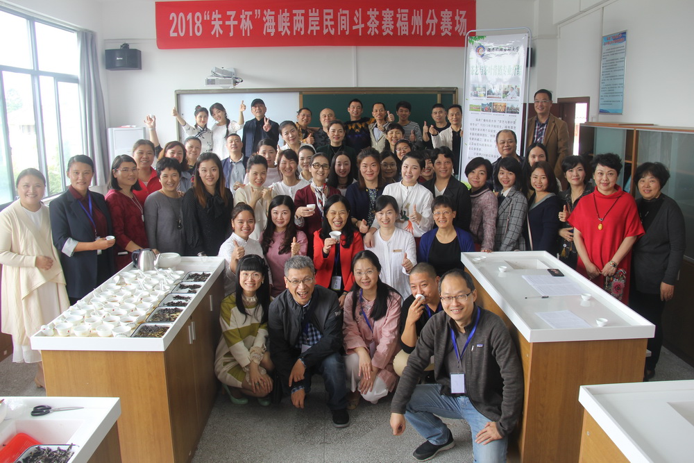 丹桂飘香时节,西湖之滨的福建电大茶叶审评实验室,茶香四溢、茶友云集。11月14至18日,2018第十二届海峡两岸茶业博览会的重要专项活动之一——“朱子杯”海峡两岸民间斗茶赛福州分赛场在我校左海校区举行。校长吴国荣,党委副书记马成斌,副校长陈展虹、沈光辉先后来到茶叶审评实验室,与文经学院师生以及来自社会各界的200多位茶友一起品茗论道,体验武夷斗茶盛事。在16日的直播活动中,陈展虹代表我校致辞。