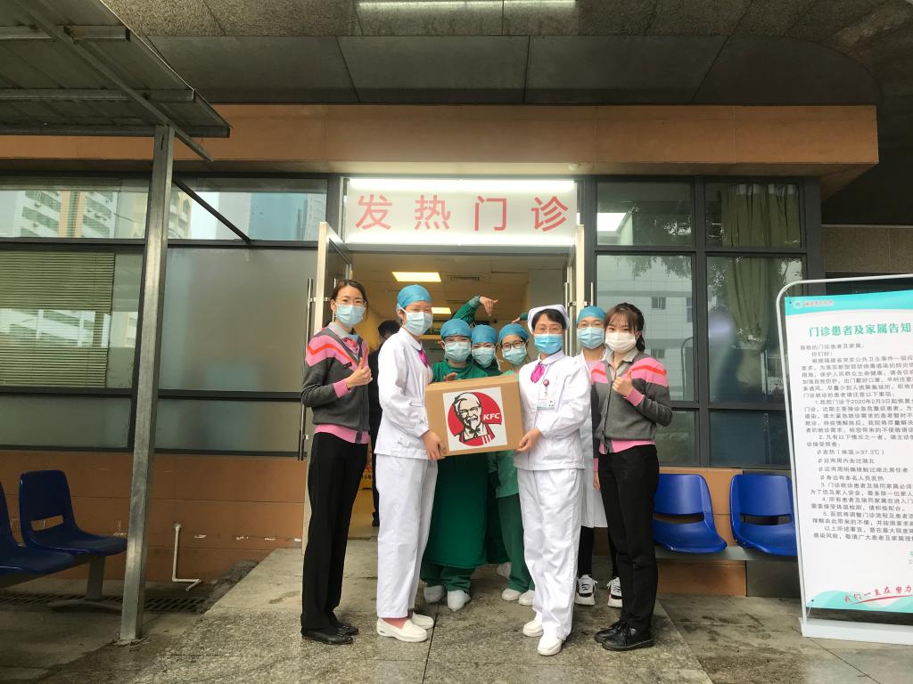 面对突如其来的疫情,百胜班约300名同学积极响应国家、学校和企业号召,放弃休假,坚守餐饮岗位,踊跃报名参与到百胜集团在全省各地市肯德基门店向医护人员送爱心餐的活动中去,以此来表达对白衣天使们的支持、关心和敬意。