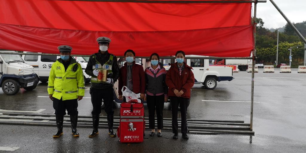 学员们将爱心餐送到高速检查点
