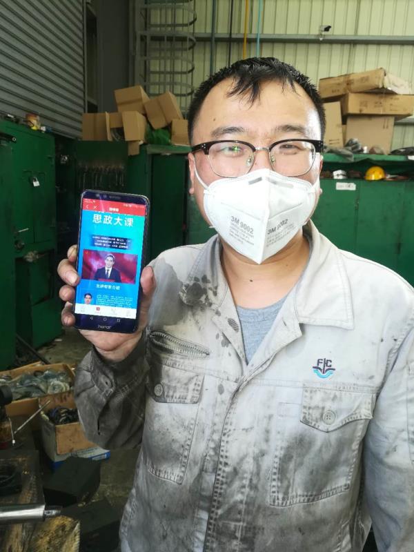 学生在工作岗位收看课程直播