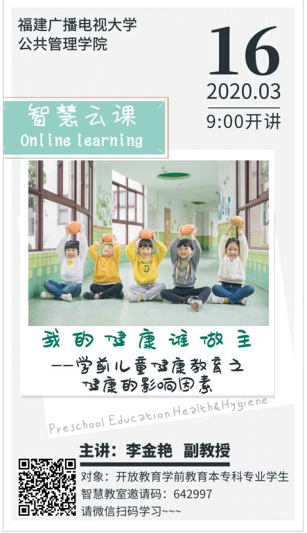 百年树人始于幼学。为响应教育部“停课不停教、不停学”的号召,帮助宅家抗疫的宝爸宝妈们更有效地开展学前儿童家庭教育,公共管理学院结合开放教育学前教育本专科专业内容,利用学校智慧教室面向全社会推出了系列学前儿童教育公益公开课。