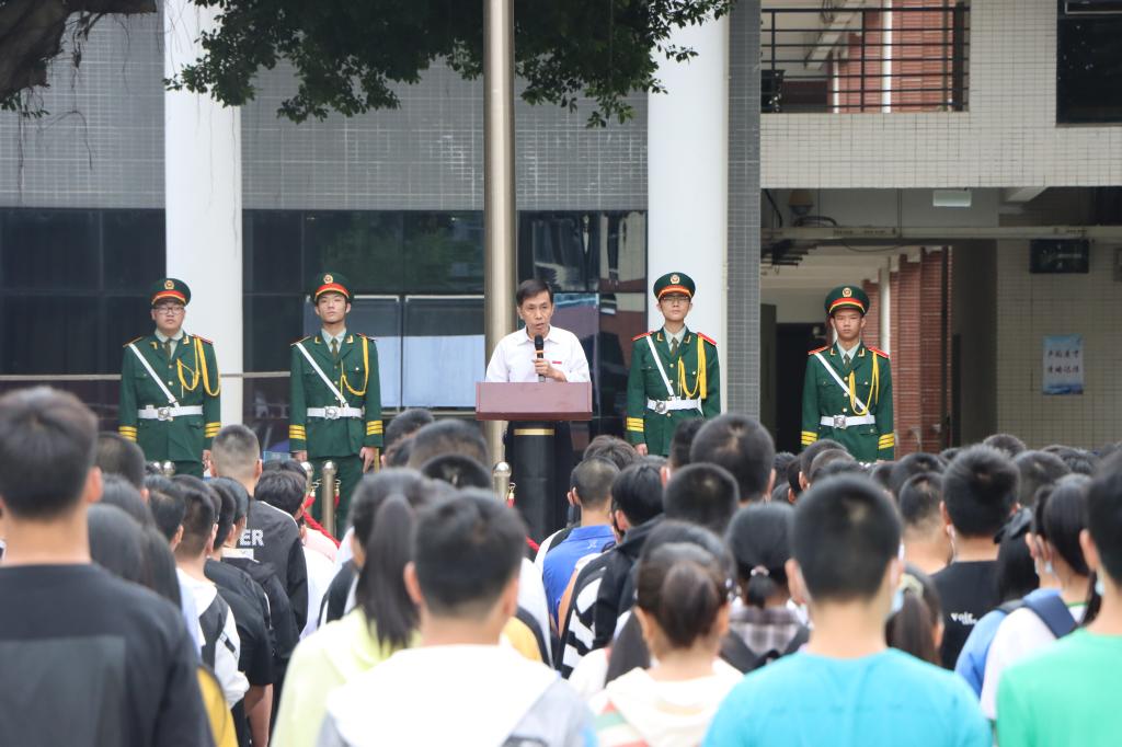 8:30,鲜艳的五星红旗在雄壮的国歌声中冉冉升起,全体师生行注目礼。庄严的升旗仪式后,职业学院党总支书记吴宁晖作国旗下的讲话,为新生带来“开学第一课”。他向同学们表示热烈的祝贺,要求同学们在常态化疫情防控下做好自我防护,找准自身定位尽快适应学校生活,做到“文明、安全、守纪”。他希望同学们以昂扬的斗志、奋发的精神、十足的信心投入到新的学习生涯中,为美好的明天而努力奋斗。