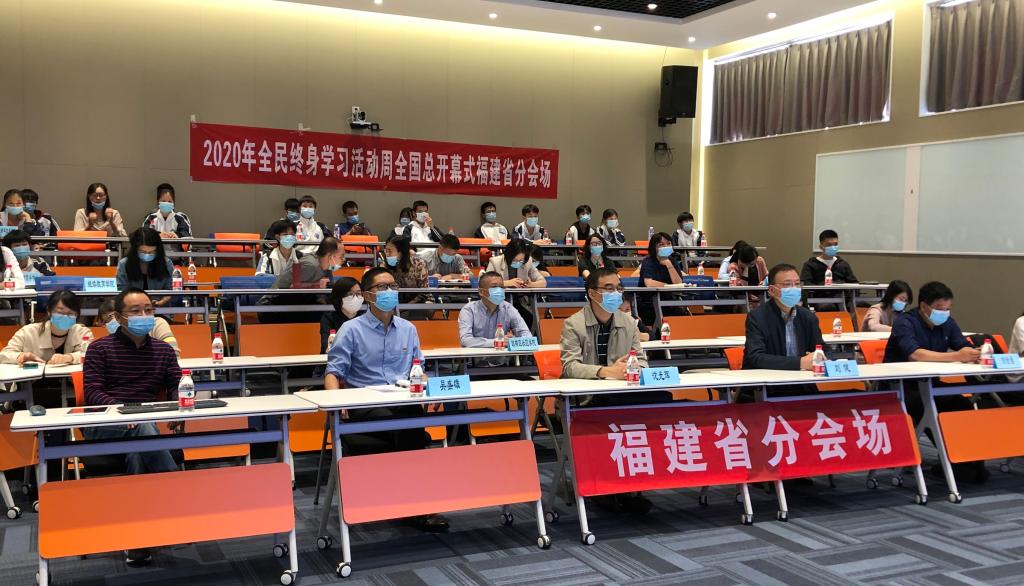 2020年全民终身学习活动周以“全民智学,助力‘双战双赢’”为主题,于11月1日线上线下同步开启。总开幕式在各省、自治区、直辖市教育厅(教委)、计划单列市教育局及新疆生产建设兵团教育局设立了36个分会场,福建省分会场设在我校左海校区智慧教室,省委教育工委委员、省教育厅副厅长(正厅长级)刘健,我校副校长、省终身教育服务中心主任沈光辉,省教育厅职业教育与成人教育处二级调研员刘会勇,福建省“百姓学习之星”“终身学习品牌项目”代表,社区居民代表,以及来自我校各学院代表等50多人参加,共同观看开幕式活动。按照疫情防控要求,现场严格控制到场人数,间隔安排座位,合理有序组织。