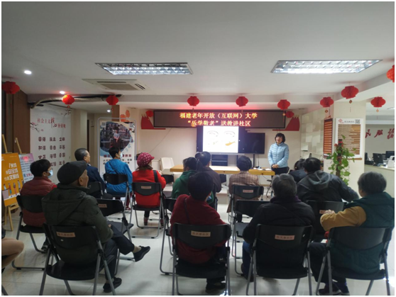 12月29日上午,福建老年开放(互联网)大学“乐学敬老”送教进社区活动在福州市鼓楼区乐天泉社区举行,附近社区老年朋友30多人参加了活动。