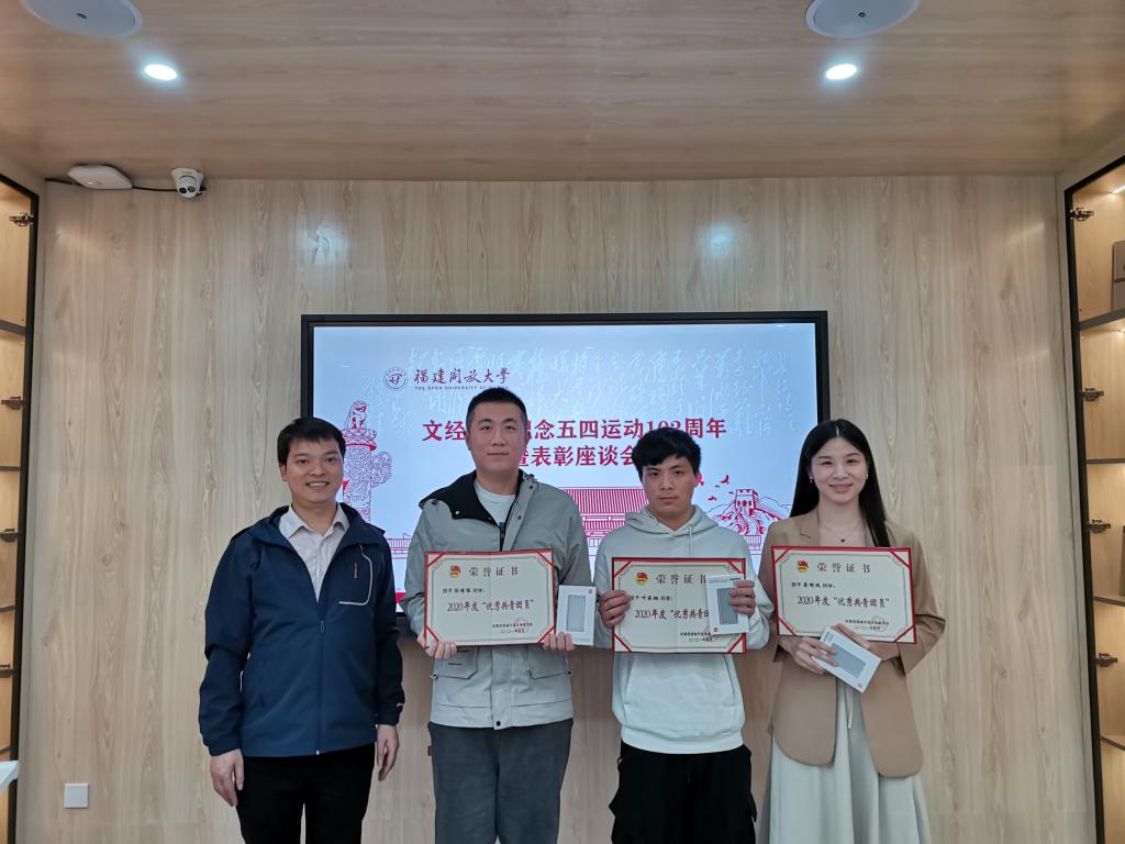 4月28日,文经学院召开纪念五四运动102周年暨表彰座谈会,隆重纪念五四运动102周年,开展优秀团员和优秀团干表彰,围绕加强新时期学生工作和青年工作开展交流座谈。文经学院院长、党总支书记刘玉兴,学生工作处副处长、校团委书记黄生春,文经学院副院长王妙真及专兼职班主任、受表彰学生代表出席会议。