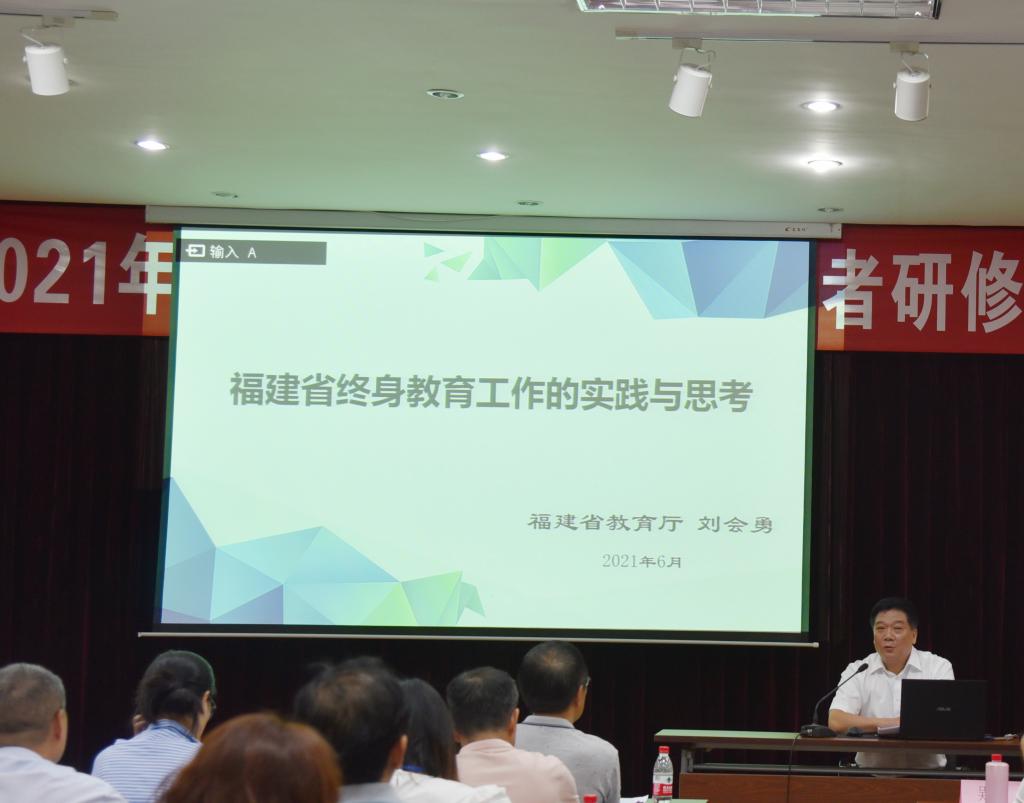 福建省教育厅职业教育与成人教育处一级调研员刘会勇出席开班仪式并讲话。他从发展格局、政策层面讲解了福建省社区教育发展的路径与策略,他指出,贯彻落实好我省老年教育发展规划、社区教育实施意见等文件,是推动我省终身教育工作的关键。并就近年来我省终身教育工作成效和经验进行交流探讨。