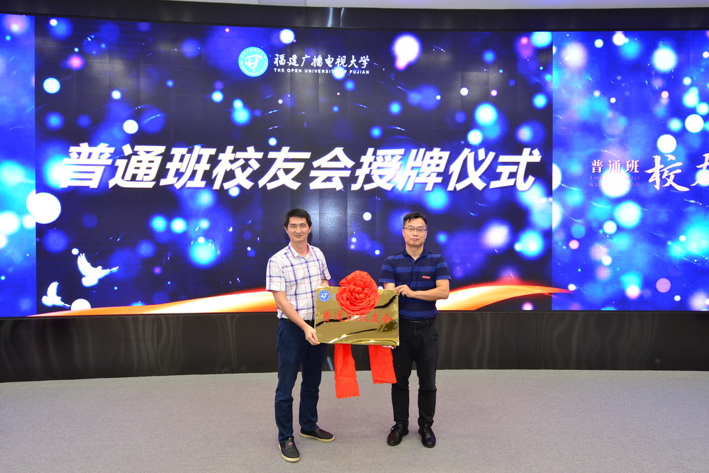 黄健新代表校友总会向普通班校友会授牌。新当选的普通班校友会会长饶锋伟代表第一届理事会在发言中表示,普通班校友会将加强校友联络,促进校友与母校联系,真正将校友会建成“校友之家”,充分发挥校友会的纽带和桥梁作用,促进校友事业发展,提升母校社会影响力。