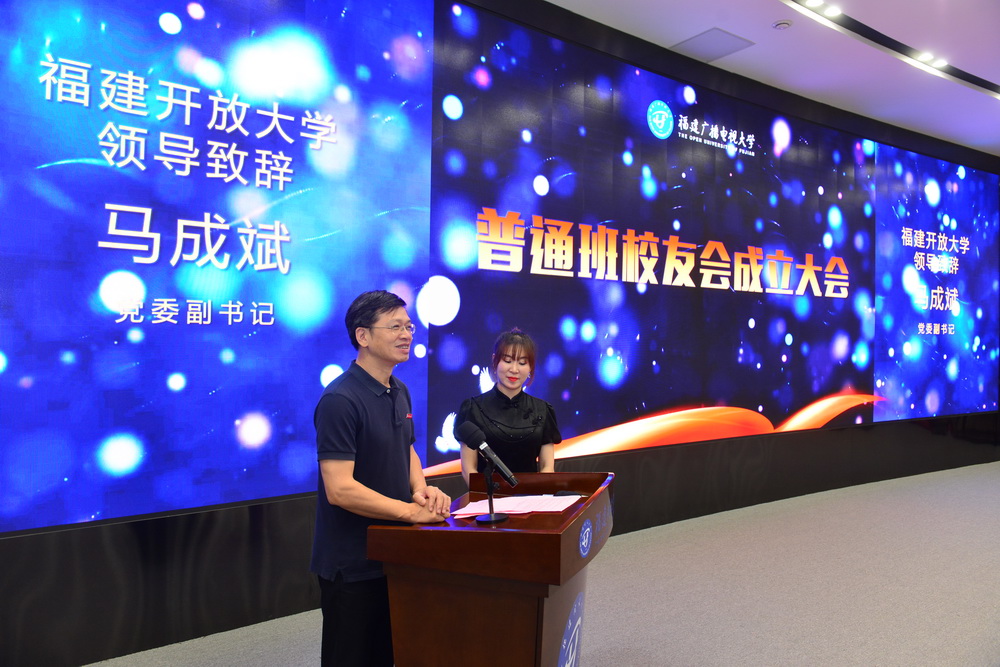 马成斌对普通班校友会的成立表示祝贺,对校友们长期以来对母校的关心与支持表示衷心的感谢。他指出,学校一直以来十分重视校友工作,把校友作为学校教育教学水平的集中体现,作为学校的宝贵资源和巨大财富,坚持联络校友感情,服务校友成长。他希望新当选的普通班校友会理事会成员,保持当年在校读书时期乐于奉献、勤于工作、不求回报的优良作风,认真履行职责,广泛联系校友,组织开展好各项活动,把校友会办成促进校友事业发展的助推器,以各种形式为母校建设成为有特色高质量的开放大学添砖加瓦。