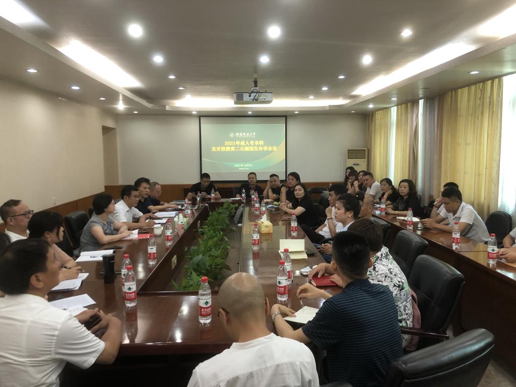7月15日下午,继续教育学院在左海校区召开2021年成人本专科及开放教育二元制招生办学会议,我校函授站点和二元制联合办学教学点相关负责人共计40余人参加会议。