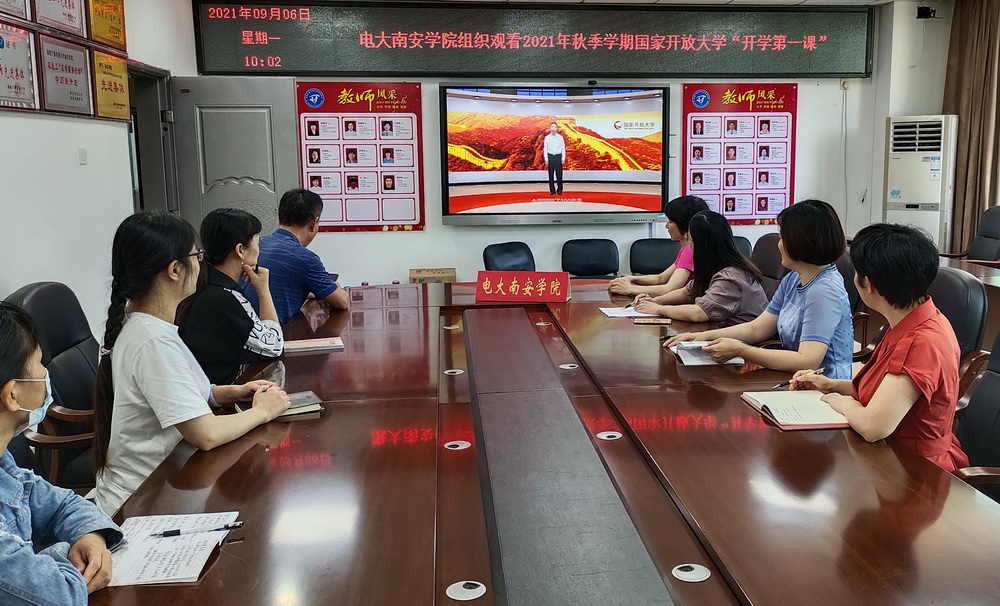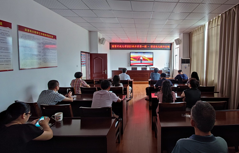 9月6日上午,2021年秋季开学初,国家开放大学党委副书记刘臣以视频直播方式主讲“开学第一课:百年大党实现中华民族伟大复兴的政治宣言”。学校认真组织各市县电大,省校各学院、办学部门师生收看直播,共同深入学习贯彻习近平总书记‘七一’重要讲话精神。