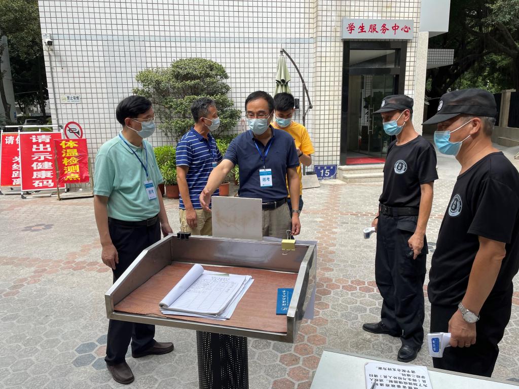 沈光辉到达考点后,详细了解考场设置、考务工作安排、应急预案布置等情况。鉴于9月10日莆田市仙游县突发新冠疫情,沈光辉对考点疫情防控工作进行了重点查看。随后实地巡视考场,检查考生答题、技术支持服务、视频监控设备与考试秩序情况。巡视过程中,沈光辉对考点考试组织工作表示满意,强调要高度重视疫情防控工作,妥善处理因疫情影响未能参加考试的考生后续补考事宜,要求各考点要持续加强疫情防控常态化下考试组织及管理工作,保证统考各项工作平稳顺利。