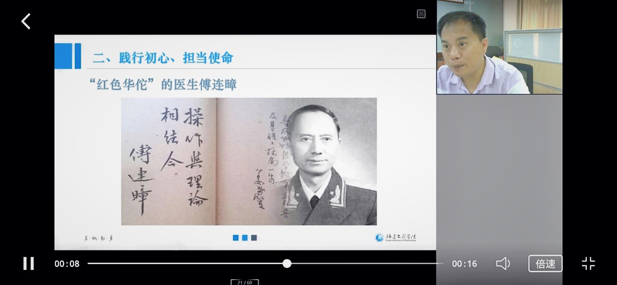会上,学校特聘思政课学术带头人、福建工程学院副教授范五三博士就学习贯彻习近平总书记“七一”重要讲话精神做了专题导学,他以“你可以永远相信中国共产党”为题,从“坚持真理坚守理想的思想优势、践行初心担当使命的政治优势、不怕牺牲英勇斗争的精神优势和对党忠诚不负人民的道德优势”四个方面诠释伟大建党精神的深刻内涵和重要意义,为思政教师上了精彩一课。韩微老师就五门思政课程的教学安排作了说明,详细介绍了新学期思政课程的直播教学安排、学生学习途径和考核办法,就将学生参加直播学习情况计入课程考核的操作方法做了布置。戴梦思老师就《形势与政策》课程教学团队的组建和团队直播教学工作做了介绍。据悉,本学期《形势与政策》课邀请分校教师组建团队开展专题直播导学,并计划围绕时事热点和学生感兴趣的问题开展现场访谈式讲解。