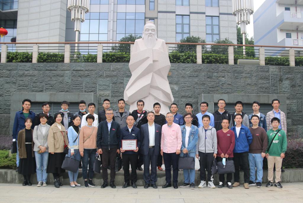 在孔子雕塑前合影留念