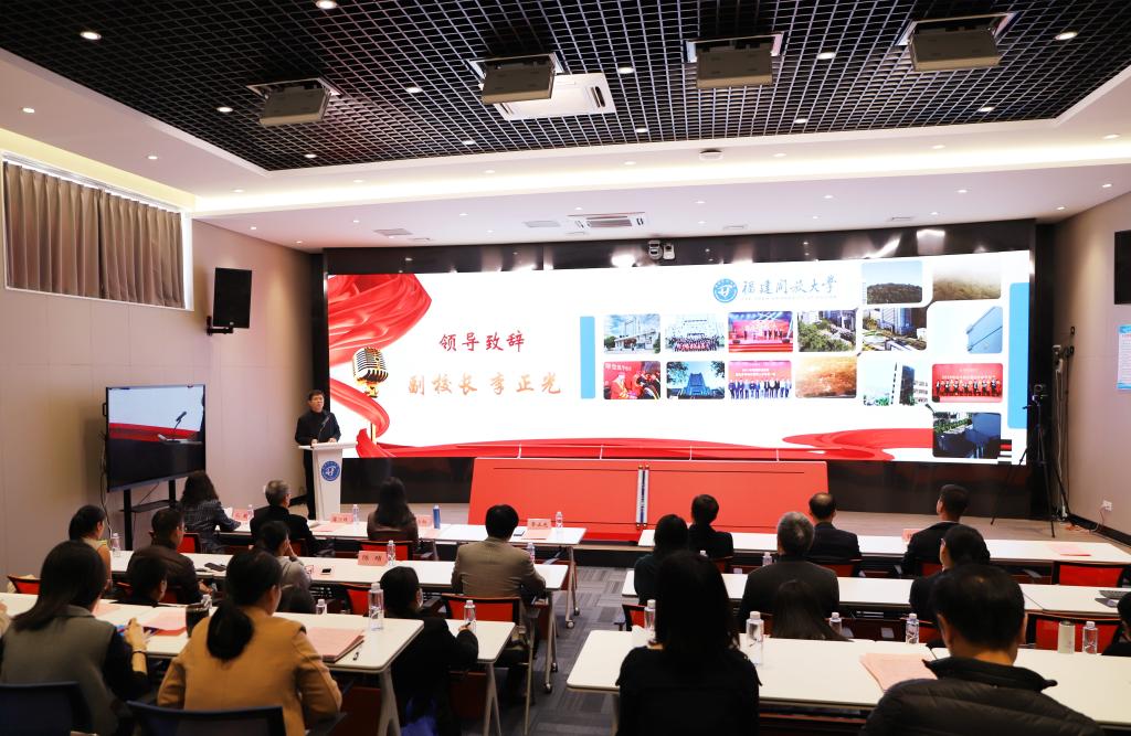 为进一步提高全省开放教育本科学生学位获取率,推进党史学习教育成果转化,落实“我为群众办实事”项目,12月2日下午,学校“英语词汇通”学习平台上线仪式在左海校区智慧教室举行。副校长李正光出席仪式,各有关部门、学院负责人、班主任、学生代表50余人参加仪式。仪式由教务处副处长孔敏主持。