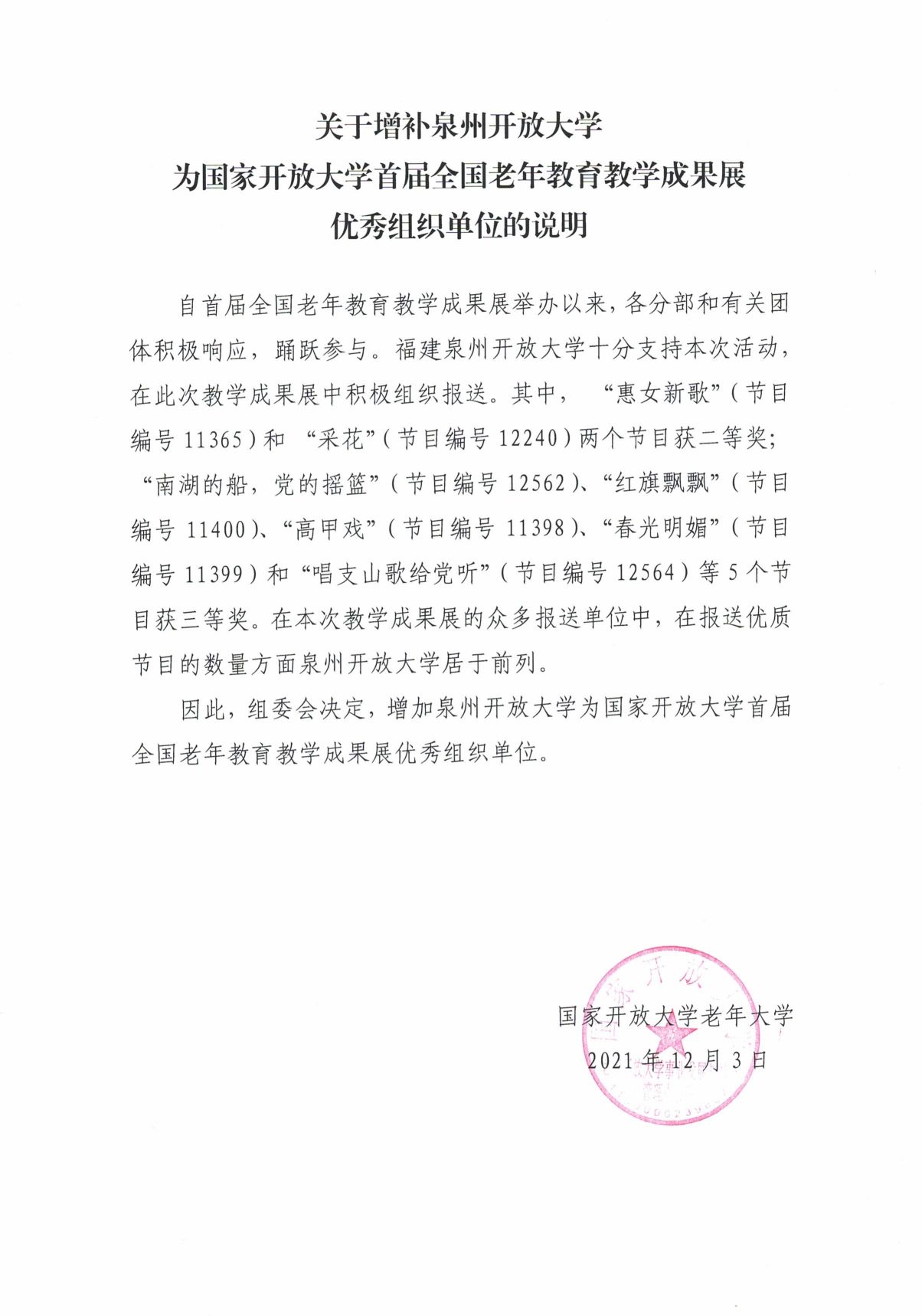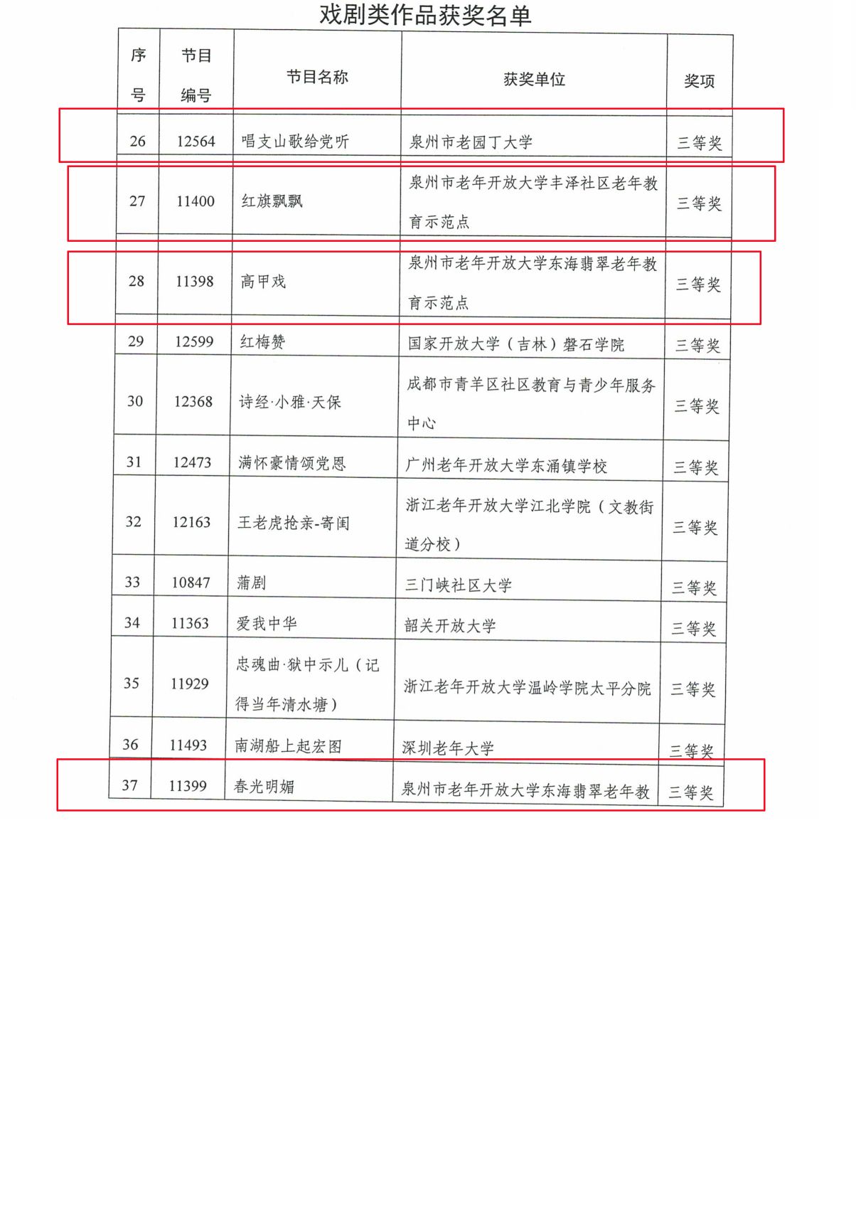 首届全国老年教育教学成果展(第二批)福建获奖名单如下: