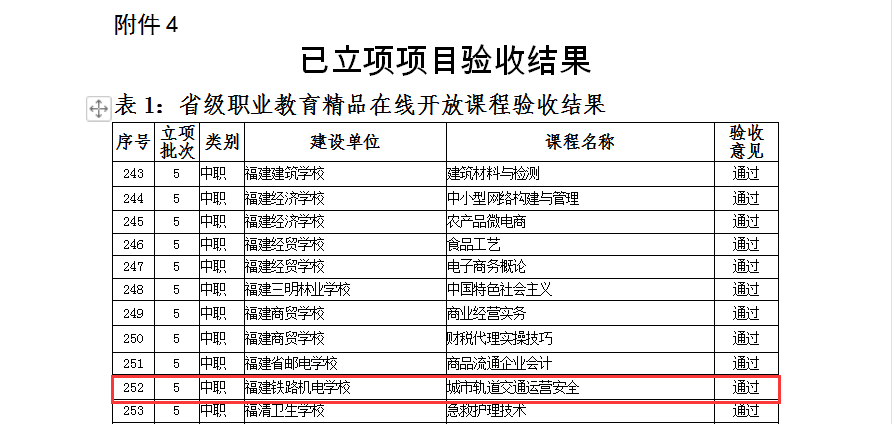 近日,根据福建省教育厅发布《关于公布2022年省级职业教育信息化项目立项建设项目及已立项建设项目验收结果的通知》,职业学院“城市轨道交通车辆构造”“铁路运输设备”两门课程,获第六批省级精品在线开放课程立项。此外,“城市轨道交通运营安全”课程通过省级职业教育精品在线开放课程验收,其在精品课程平台浏览量高达379万次。