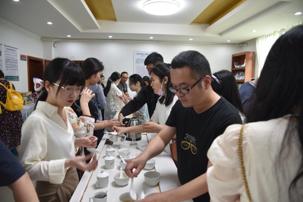 6月16日上午,文经学院茶艺与茶文化专业在福建春伦集团开展校外实践及面授课程。本次活动吸引了茶艺与茶叶营销、茶艺与茶文化专业教师团队和各年级师生近50人参加学习。大家在春伦文化创业产业园主管叶小洁引领下参观了春伦公司茉莉花茶馆,欣赏茉莉花茶茶艺表演。福州市非物质文化遗产项目代表性传承人、福州茉莉花茶传统窨制工艺传承大师张子健在茉莉花茶传统窨制工艺区生动演绎了茉莉花茶手工制作主要流程。福建春伦集团质量管控部经理、国家一级评茶员唐艳现场指导茶专业同学开展茉莉花茶赤金、茉莉花茶白龙珠、创新茶---茉莉普洱多款优质茶叶审评。