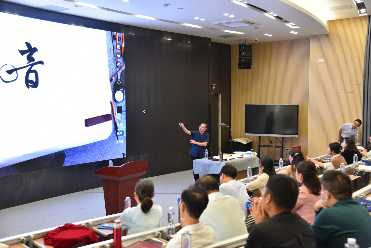 福建省硬笔书法家协会会长严祖喜授课