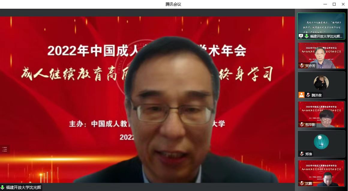12月16日,由中国成人教育协会主办、上海师范大学承办,以“成人继续教育高质量发展与全民终身学习”为主题的中国成人教育协会学术年会以线上和线下相结合的方式在上海师范大学举行。我校副校长沈光辉在线出席会议并作主题报告。